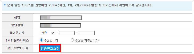 경찰청 교통민원24(이파인) 문자 알림 서비스 신청