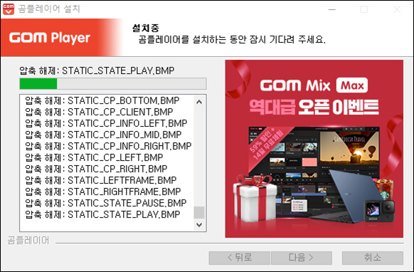 ⑨ 곰플레이어 설치가 진행됩니다. 현재 우측에는 곰 플레이어 관련 오픈 이벤트 행사 배너가 떠있는데 누르면 관련 패키지 구매 화면으로 이동하니 누르지 마시기 바랍니다.