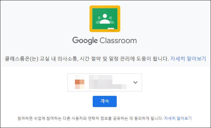 구글 클래스룸을 사용하려면 선생님과 학생 모두 구글 계정이 있어야 합니다. 학교에서 사용하는 경우에는 대부분 구글 G 스위트를 사용하고 있어서 개인정보 보호 및 보안을 이유로 일반적인 구글 계정은 참여할 수 없으니 사용 전에 이 점을 꼭 확인해 보시기 바랍니다. 이 경우에는 구글 G 스위트에서 선생님과 학생에게 제공한 계정으로 해야 합니다.