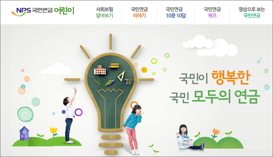 아직 국민연금에 대한 개념이 잘 잡히지 않은 분이라면 어린이 메뉴를 확인해 보시기 바랍니다. 국민연금 관련된 정보를 상세하게 설명해 주기 때문에 어떤 부분에서 자신이 보장을 받을 수 있는지 이해하는데 큰 도움이 될 수 있습니다.