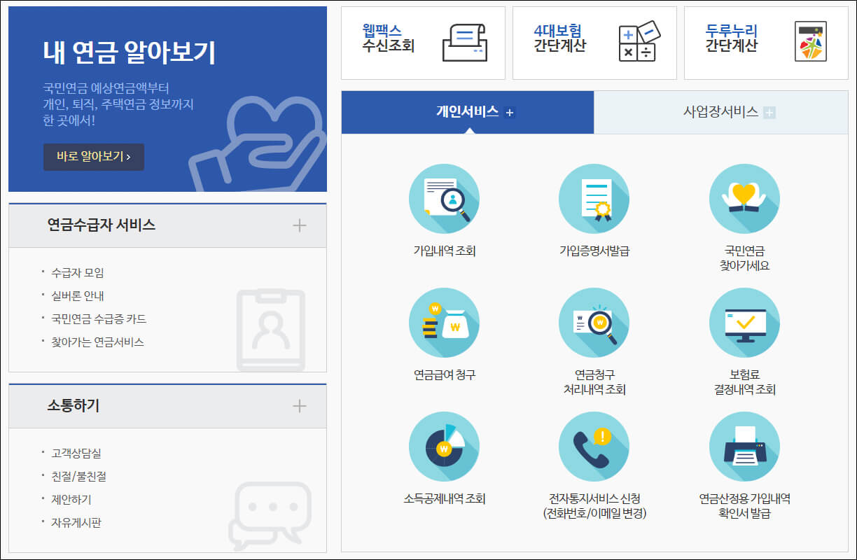 국민연금 관리공단 홈페이지