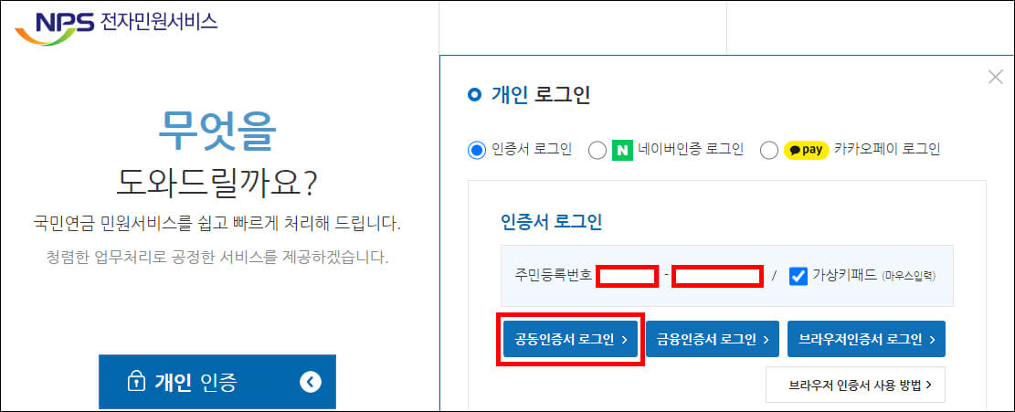 - 공동인증서가 있어야 해당 서비스를 이용할 수 있습니다.