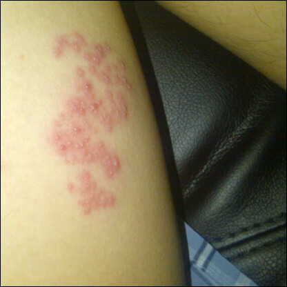 줄을 이룬 모양의 발진과 함께 빨갛고 오돌토돌한 물집이 주로 엉덩이나 몸통에 발생합니다. 그러나 꼭 그 부위에만 생기는 건 아닙니다. 얼굴, 팔, 다리 등 어디에서도 발생할 수 있습니다. 붉은 발진과 물집은 1~2주 이내에 고름이 차게 되고 농포와 딱지가 되면서 2~3주 후에 점차 사라집니다.