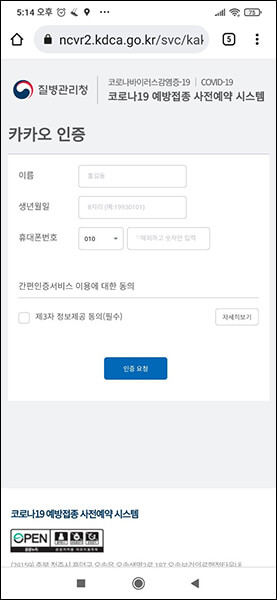 1) 온라인 백신접종 예약