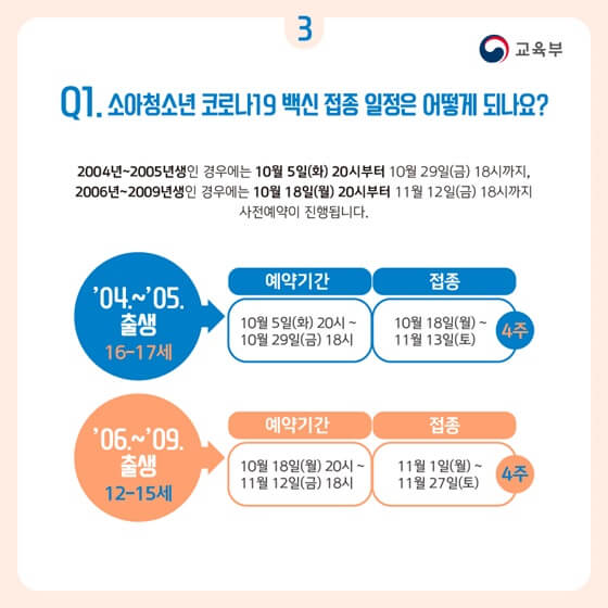 1. 소아 청소년 백신접종 예약 일정