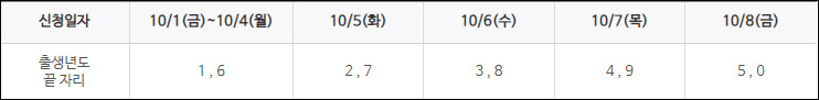 * 신청 첫 주 5부제 신청