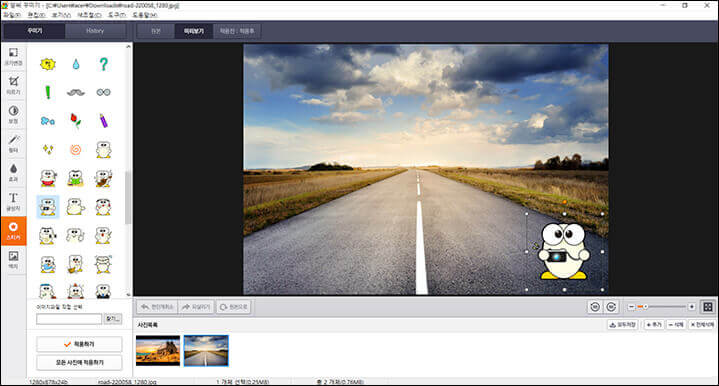 15가지 필터가 제공되며, 도형과 말풍선 입력 기능이 제공되는 것도 장점이라고 할 수 있습니다.
