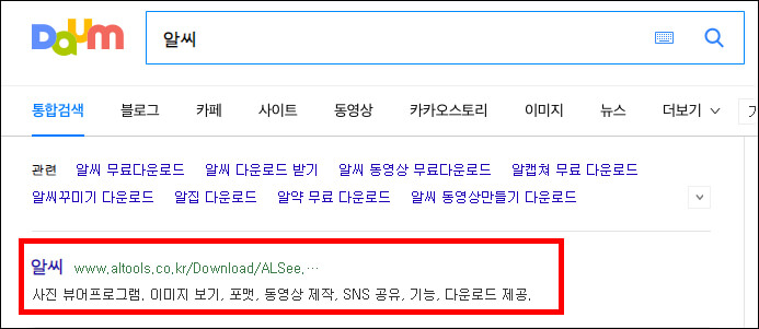 알씨 주요 기능에 대해 알아보았습니다. 알씨 프로그램은 무료로 다운로드할 수 있습니다. 포털 사이트에서 '알시'를 검색한 후 클릭하면 알씨 다운로드 사이트로 이동합니다.