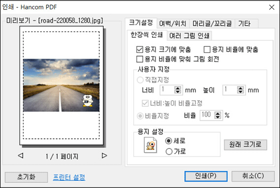 가끔 이미지를 다운로드해서 출력하려고 할 때 종이 한 장에 나오지 않는 경우가 있습니다. 해상도가 너무 높거나 이미지 사이즈가 크게 지정되어 있기 때문인데, 이럴 때는 알씨에서 출력하면 큰 이미지도 용지에 맞게 출력할 수 있습니다.