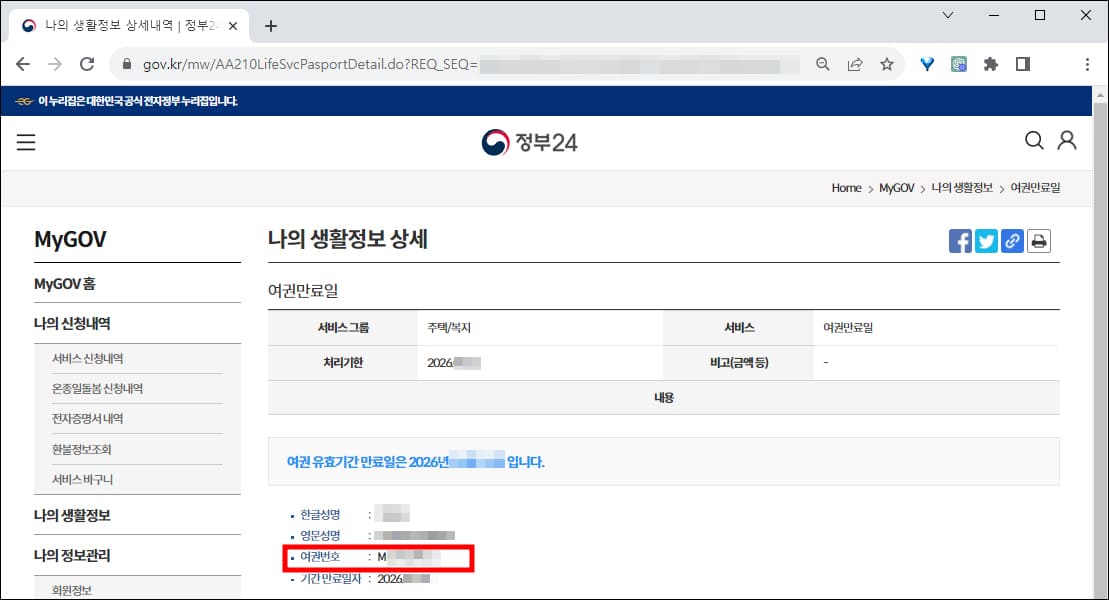 1. 정부24 - 나의 생활정보에서 여권번호 조회
