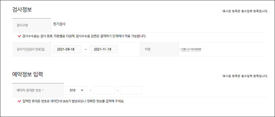 ④ 검사기간 종류가 표시되고 검사기간 및 만료일이 나옵니다. 그 기간 안에 꼭 자동차검사 예약을 하셔야 합니다.