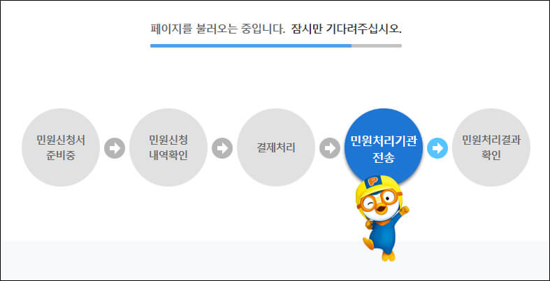 로그인 과정을 거치면 민원 신청 내역 확인 화면으로 이동합니다.