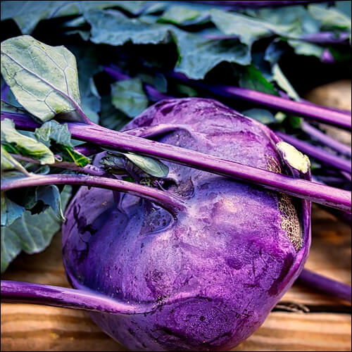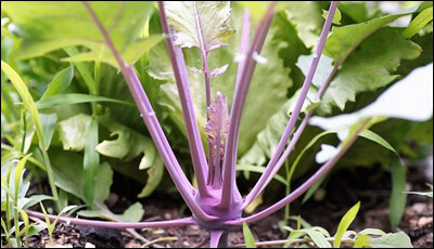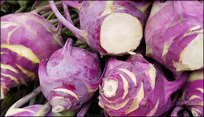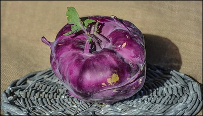 콜라비는 양배추에서 분화된 두해살이 채소입니다. 대부분 자주색 채소로 알고 있지만 녹색과 자주색 2가지 종류가 있습니다. 모양은 둥근 구형으로 양배추, 브로콜리, 콜리 플라워 등과 동일한 종입니다.