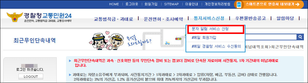 경찰청 교통민원24(이파인) 문자 알림 서비스 신청