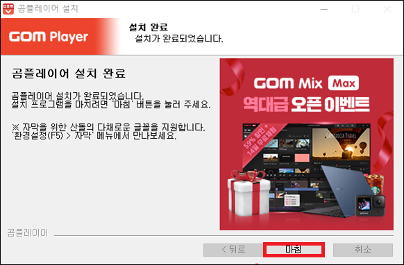 ⑩ 곰플레이어 다운로드 및 무료 설치가 모두 완료되었습니다.