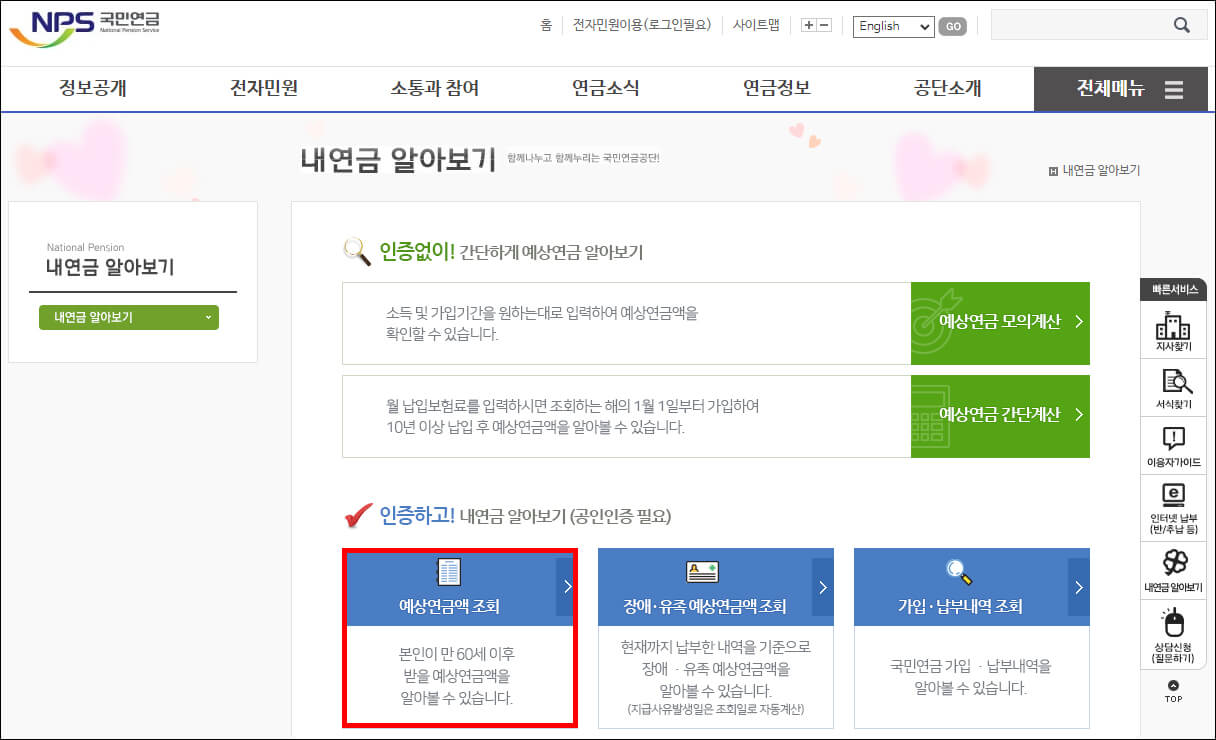 ■ 국민연금 수령액 알아보기 방법