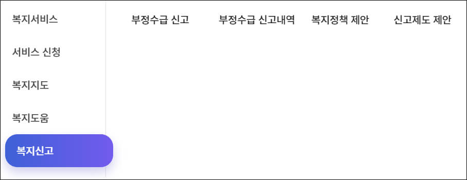 보건복지부 주관사업인 기초생활보장, 기초연금, 장애인사업, 아동보육, 노인복지, 복지시설, 보건의료 등의 신고만 접수 가능합니다. 그외 타부처신고를 하고 싶은 경우에는 국민권익위원회에서 할 수 있습니다.