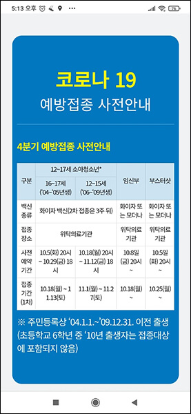 소아 청소년 백신접종 예약