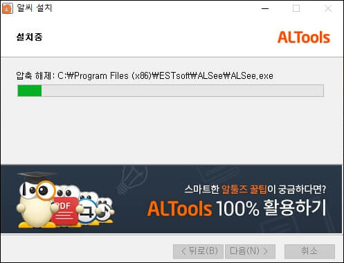 ⑥ 프로그램 용량이 크지 않아서 알씨가 설치되는 시간은 길지 않습니다.