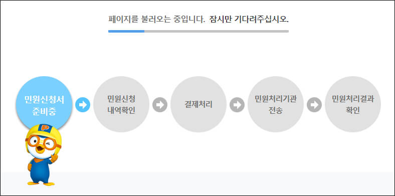 로그인 과정을 거치면 민원 신청 내역 확인 화면으로 이동합니다.
