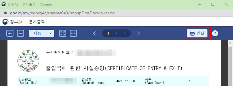 출입국사실증명서 인터넷 발급