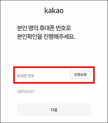 ⑤ 발송된 인증번호 6자리를 입력한 후 확인 과정을 마무리하면 카카오톡 QR코드 생성이 완료됩니다.