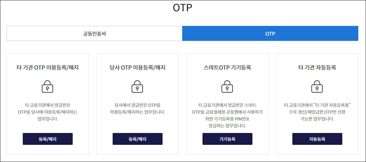 타 기관에서 발급받은 OTP를 키움증권에 등록하는 기능도 있는데, 저는 키움증권이 처음으로 거래하는 증권사라서 딱히 사용할 일은 없을 것 같습니다.