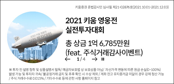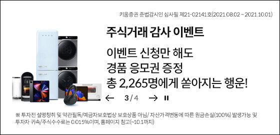 키움증권 홈페이지를 수시로 확인하면 좋은 것이 모의/실전 투자 대회나 수수료 할인 이벤트, 주식거래 감사 이벤트 등 다양한 부가정보를 얻을 수 있다는 것입니다. 저는 이번에 시행한 주식거래 감사 이벤트에 신청했습니다. 매월 새로운 이벤트들을 계속 기획 중인 것 같아 자주 확인해 볼 생각입니다.