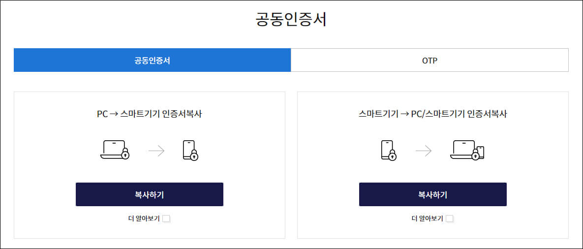 가장 많이 사용하는 기능이 'PC → 스마트기기 인증서 복사', '스마트기기 인증서 복사 → PC'인 것 같습니다.