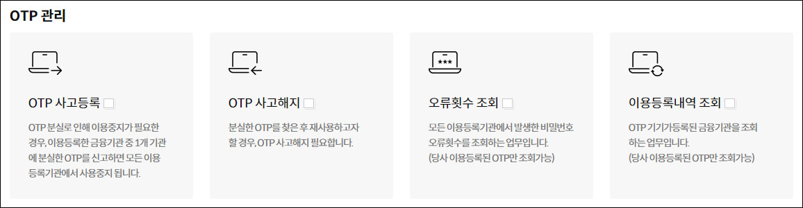 대신 OTP 관리는 눈여겨봐야 할 것 같습니다. 휴대폰을 분실하거나 해서 OTP를 분실했다면 사고등록 및 사고해지를 할 수 있으니 이럴 때는 키움증권 홈페이지에서 인증센터 메뉴를 찾아보시기 바랍니다.